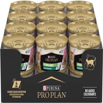 Упаковка вологого корму для дорослих кастрованих котів Pro Plan Sterilised, шматочки у паштеті, з ту